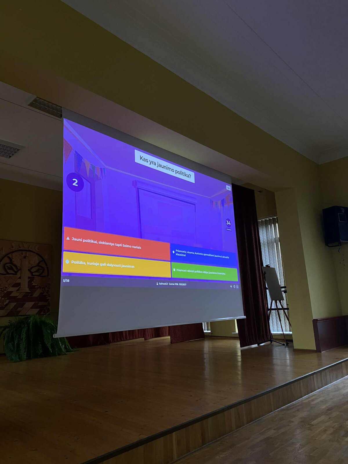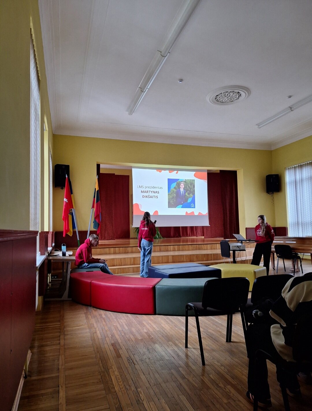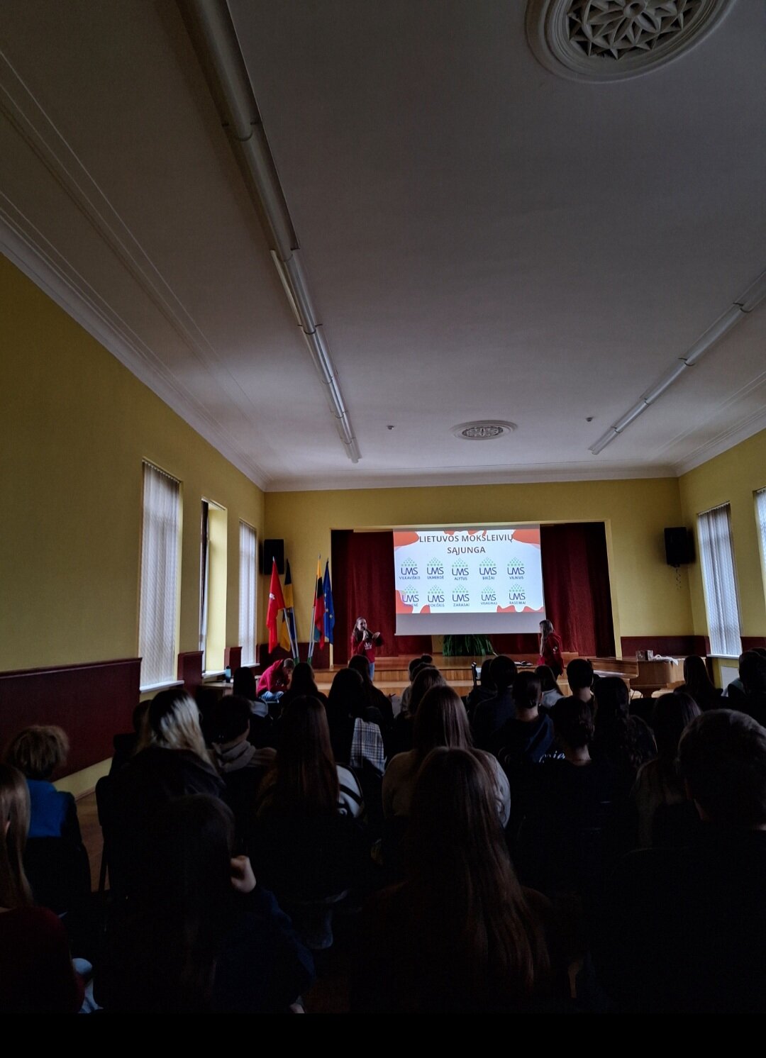 Svečiai pristatė Lietuvos moksleivių sąjungą, paaiškino, kas yra „jaunimo politika“, ir pakvietė mokinius kartu aptarti problemas, su kuriomis jie susiduria mokykloje. Kartu buvo ieškoma galimų sprendimų ir būdų, kaip sustiprinti mokinių balsą bendruomenėje.