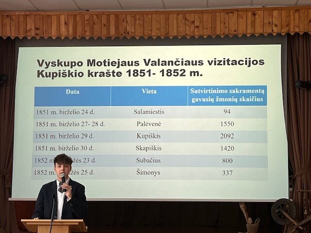 Šia proga kovo 12d. Kupiškio r. Subačiaus gimnazijoje vyko regioninė konferencija, kurioje pranešimą ,,Motiejaus Valančiaus veikla Kupiškio krašte" skaitė mūsų gimnazijos IIa klasės mokinys Nojus Pajarskas. Pranešime Nojus išsamiai pristatė vyskupo Valančiaus vizitacijas, Blaivybės sąjūdžio pradžią mūsų krašte, įvertino, kuo reikšminga šios iškilios asmenybės veikla kupiškėnams.