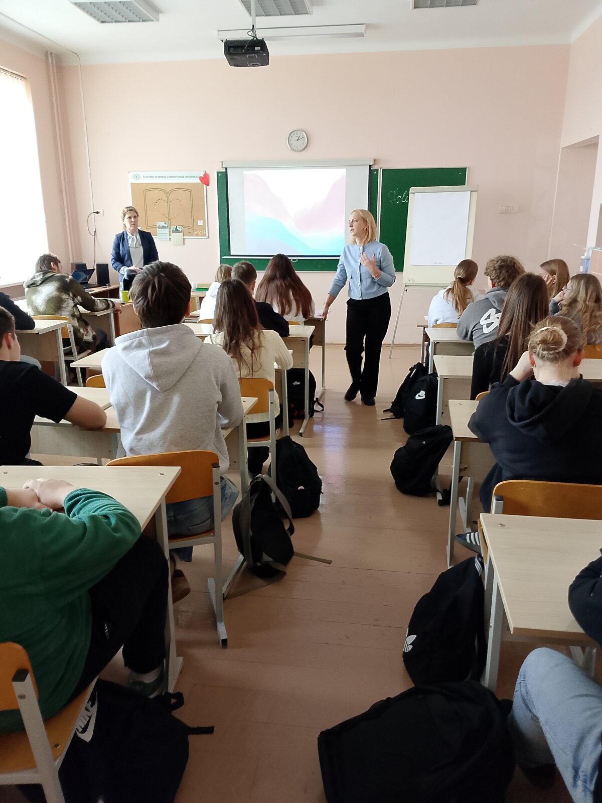 Lektorė Skaistė Rimkienė, psichologė ir priklausomybių konsultantė, su gimnazistais aptarė psichoaktyviųjų medžiagų poveikį, riziką ir sveikas alternatyvas, padedančias stiprinti fizinę ir emocinę gerovę. Lektorė aiškino mokiniams, kokios medžiagos, kokias pasekmes sukelia.