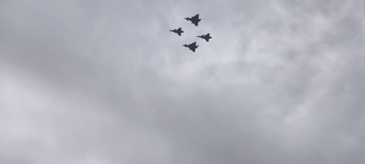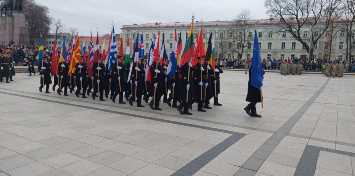 Mokiniai stebėjo Katedros aikštėje iškilmingą rikiuotę, klausėsi sveikinimo kalbų, stebėjo NATO oro policijos misiją vykdančių pajėgų naikintuvų sveikinimo skrydį ir karių paradą Gedimino prospekte.