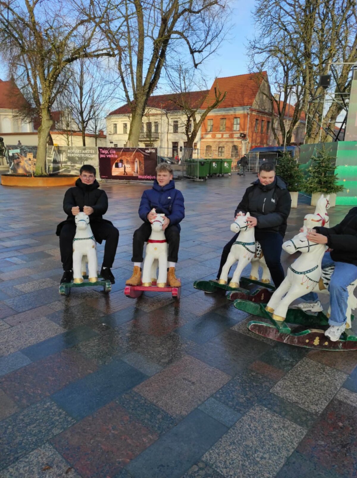 Iš pradžių atvykome į Kauno Rotušės aikštę, kur pamatėme gražiąją Kalėdų eglę ir pasigrožėjome kalėdiniu miestu.