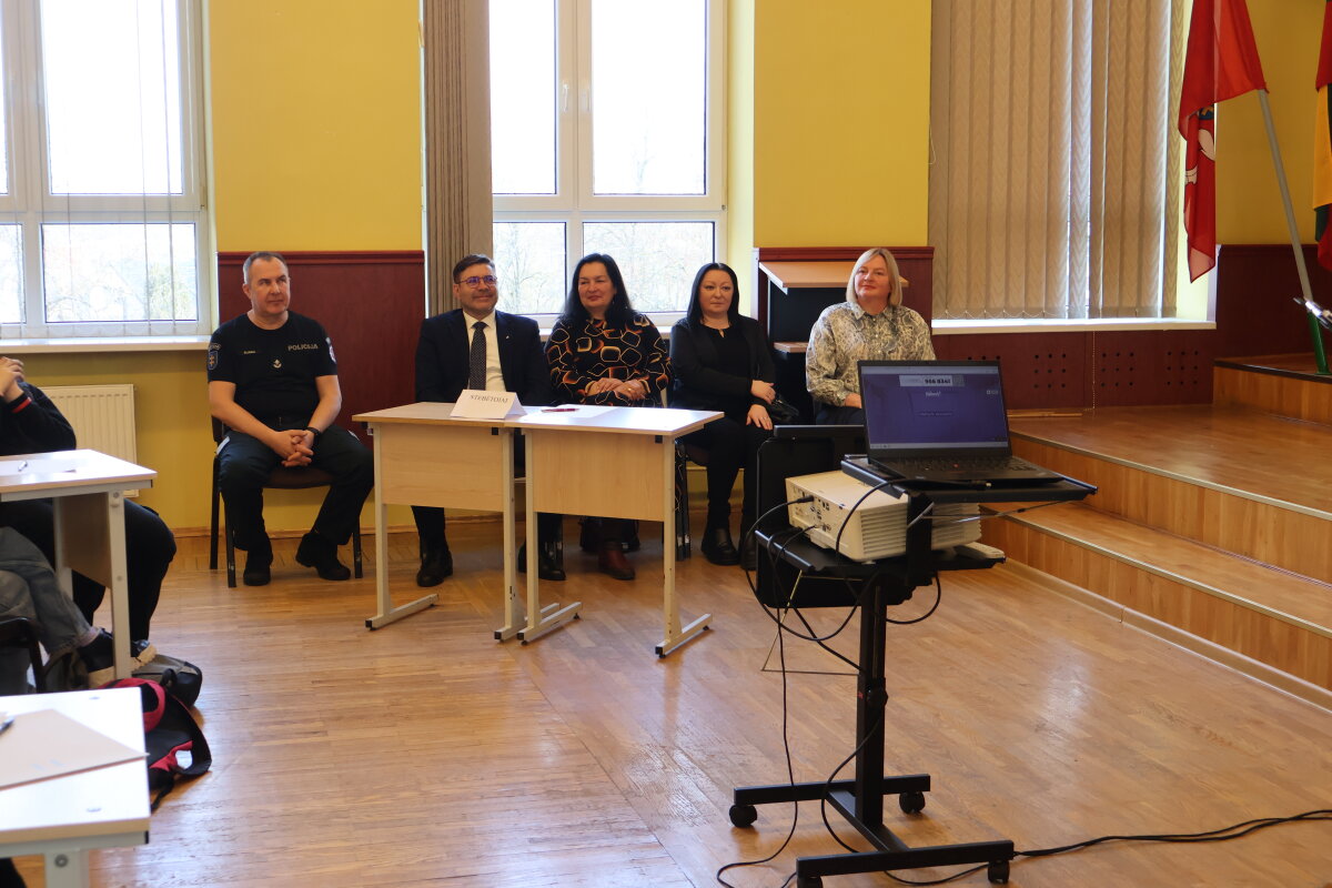 Konkurso dalyvius sveikino ir sėkmės linkėjo Panevėžio apskrities vyriausiojo policijos komisariato Kupiškio rajono policijos komisariato Reagavimo skyriaus viršininkas, atliekantis viršininko funkcijas Egidijus Slunka, Kupiškio rajono savivaldybės vicemeras Valdas Šateika, Kupiškio rajono savivaldybės Švietimo ir sporto skyriaus vedėja Jurgita Trifeldienė ir Kupiškio Lauryno Stuokos -Gucevičiaus gimnazijos socialinė pedagogė Audronė Matuzevičienė.