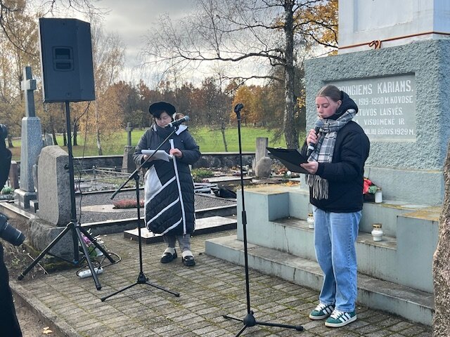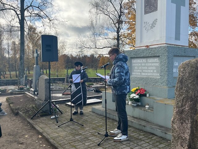 Spalio 29 dieną IIa klasės mokiniai ir istorijos bei pilietiškumo pagrindų mokytoja Inga Sakalauskienė Kupiškio senosiose kapinėse dalyvavo poetės, partizanės Dianos Glemžaitės 100-ųjų gimimo metinių atminimo renginyje.