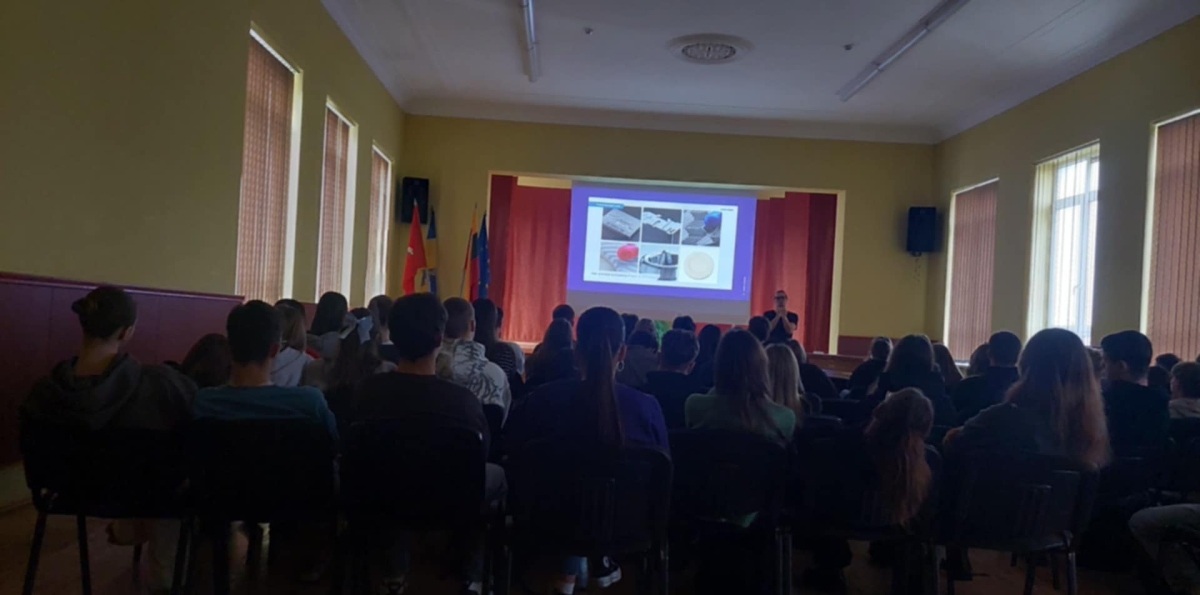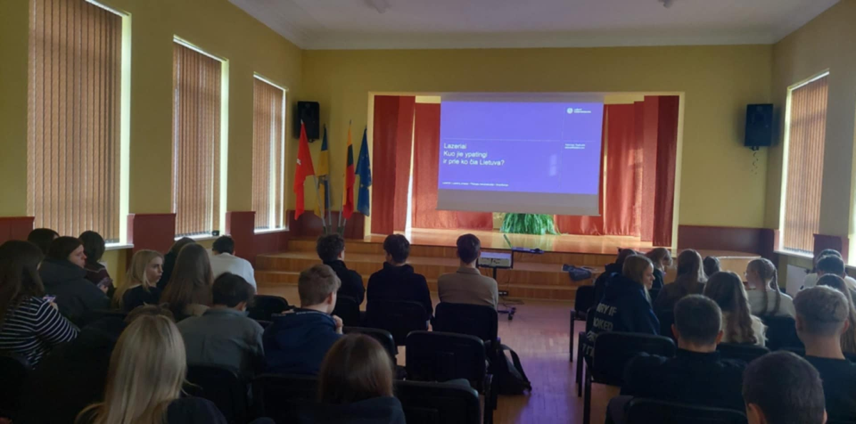 Lapkričio 21 dieną gimnazijoje lankėsi „Light Conversion“ lazerių inžinierius, edukacinių programų koordinatorius Adomas Kačiušis. Jis vedė mokiniams užsiėmimą tema ,,Lazeriai. Kuo jie ypatingi ir prie ko čia Lietuva?“