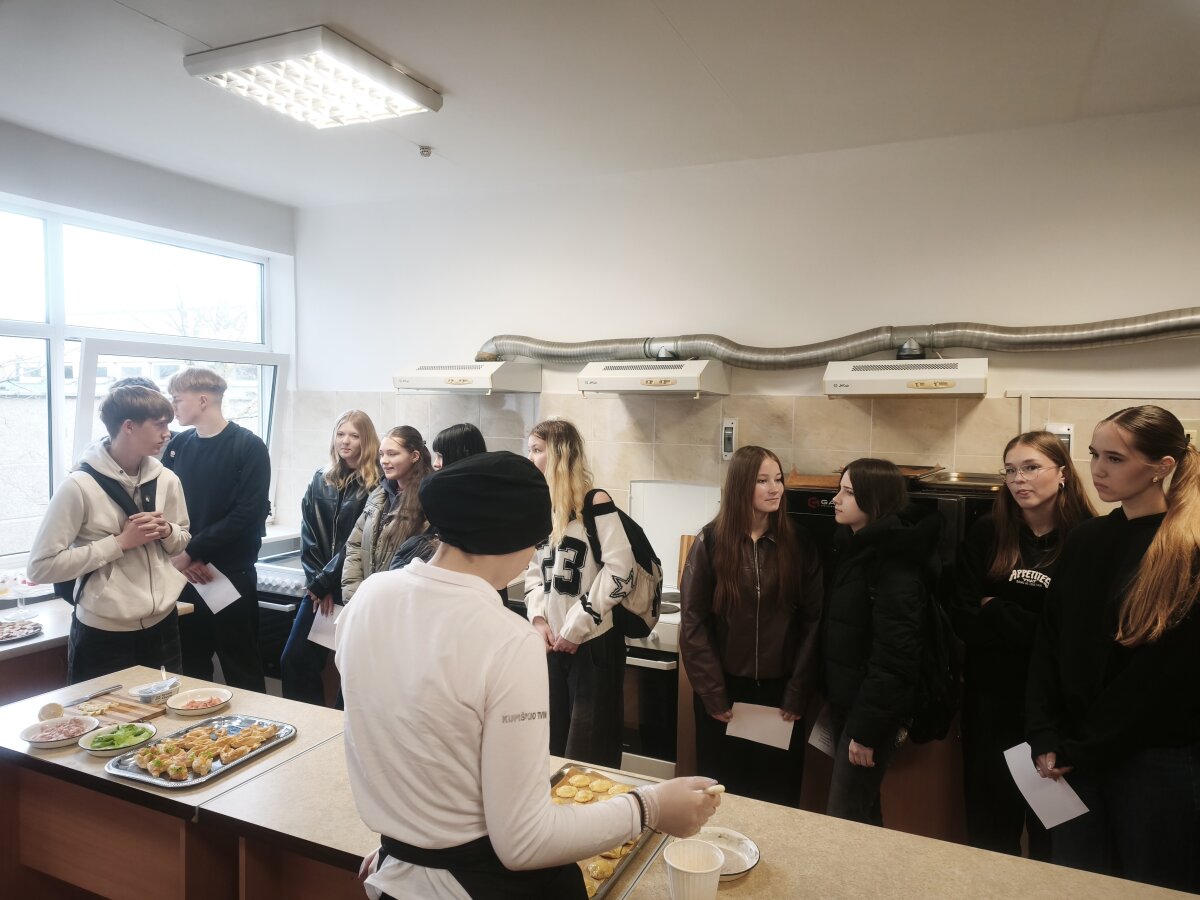 Mokiniai susipažino su profesijomis, mokyklos aplinka ir inventoriumi. Po visų veiklų dalyviai buvo pavaišinti Italijos virtuvės šefo M. Lučkos pagamintais užkandžiais, desertais ir kitais skanumynais.